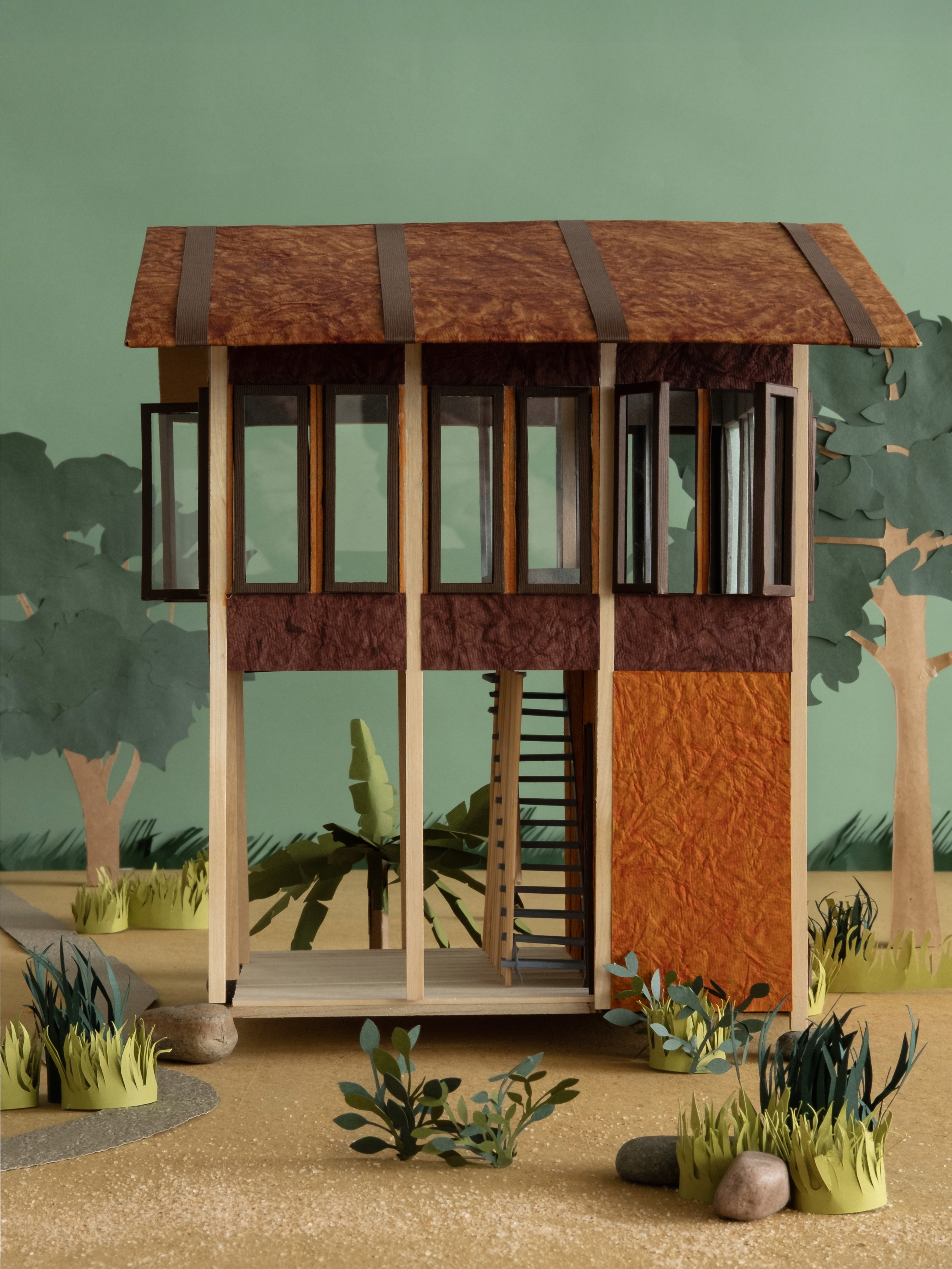 Developed through models, material research and joinery prototypes, the system combines natural materials with a clear structural logic. Buildings are lightweight, adaptable and easy to assemble on remote or uneven sites.